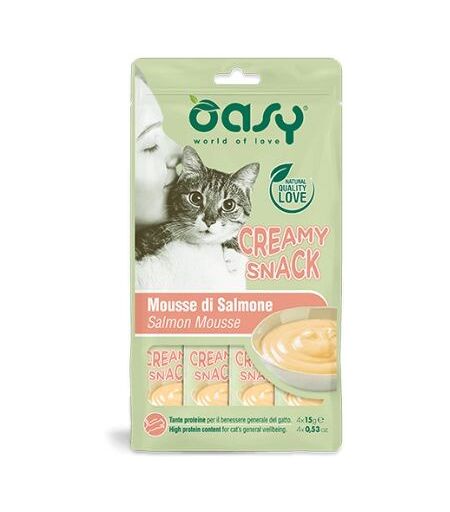 Snack per gatti cremoso Morbida mousse di salmone Ricco di proteine Confezione da 4 snack da 15 gr ...