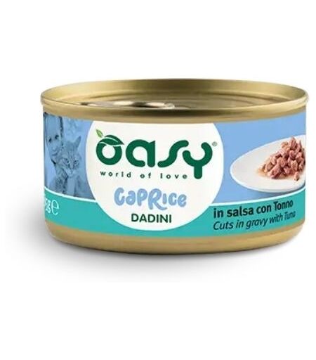 Alimento per gatti adulti: Perfetto per gatti adulti, Oasy Cat Caprice Dadini con Tonno è un alimento umido completo e nutriente. Gusto Tonno: Un sapore delizioso e appetitoso che rende ogni pasto un momento speciale per il tuo felino. Taglio a Dadini: La forma a dadini facilita la masticazione, rendendo il pasto più invitante. Alta Palatabilità: La combinazione di carne e tonno assicura che il tuo gatto mangi con entusiasmo. Formato Pratico: Disponibile in vasetti da 85 g, ideali per porzioni fresche e singole. ...