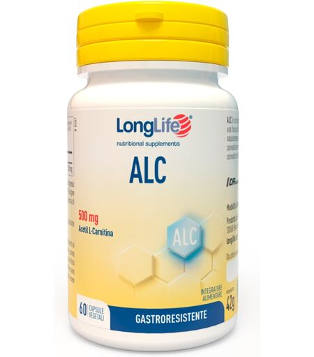 LongLife - ALC 500 mg - Descrizione Integratore alimentare di acetil L - carnitina. L'ALC è una forma di rilascio della L - carnitina, derivato aminoacido naturalmente presente nell'organismo umano e in alcuni alimenti, coinvolta nel trasporto degli acidi grassi, e del gruppo acetilico, coinvolto n… ...