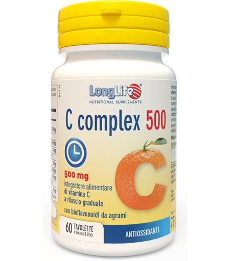 LongLife C complex 500 - Descrizione Integratore di vitamina C con bioflavonoidi da agrumi. La vitamina C svolge una funzione antiossidante contribuendo a proteggere le cellule dai radicali liberi, contribuisce alla normale formazione del collagene per la normale funzione della pelle, dei denti, de… ...