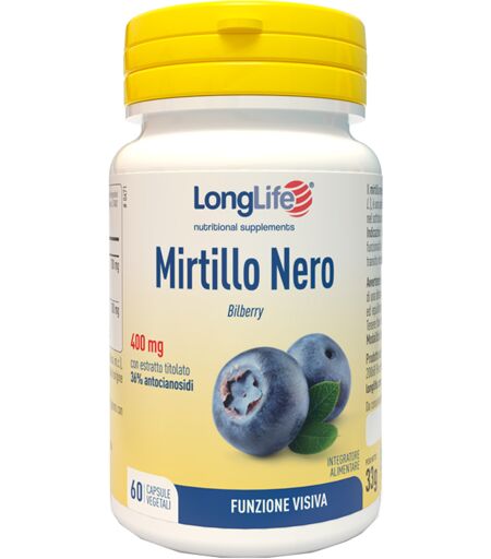 LongLife Mirtillo Nero 400 mg - Descrizione Integratore alimentare di mirtillo nero titolato al 25% in antocianidine, indicato per il benessere della vista, la funzionalità del microcircolo (gambe pesanti) e la regolarità del transito intestinale, con attività antiossidante. Adatto a vegetariani e … ...