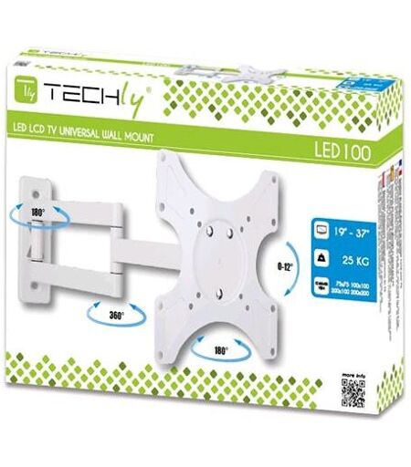 TECHLY Supporto a muro per TV LED LCD 19-37'' inclinabile 3 snodi bianco