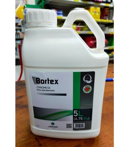 BORTEX Formulazione sicura ed efficace di Boro per favorire le fasi di fioritura, allegagione e maturazione Il legame con la monoetanolammina rende BORTEX particolarmente attivo nel migliorare la vitalità del polline e quindi l’allegagione, incrementare la divisione cellulare e la traslocazione degli zuccheri e favorire la sintesi di proteine e la resistenza della parete cellulare. Ottimo in miscela con ALICAL. Favorisce la fioritura, l’allegagione e la maturazione Concime fogliare a base di Boro complessato con monoetanolammina particolarmente attivo nel migliorare la vitalità del polline e quindi l’allegagione, incrementare la divisione cellulare e la traslocazione degli zuccheri, favorire la sintesi di proteine e la resistenza della parete cellulare. Consentito in agricoltura biologica Caratteristiche Formulazione: Soluzione Riferimento alla legge: CE (Reg. 2003/2003) Tipo di trattamento: Concimazione fogliare Tipo di fertilizzante: Concimi minerali per l'apporto di microelementi ...