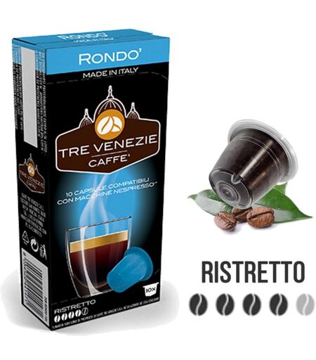 10 Capsule Ristretto Compatibili Nespresso - Caffè Tre Venezie Rondò Una Miscela Intensa, Composta Da Caffè 90% Robusta E 10% Arabica Dal Colore Nocciola, Tendente Testa Di Moro. L'Aroma È Corposo E Deciso. Ideale Per Gli Amanti Del Caffè Ristretto. intensità *i marchi Presenti n ...