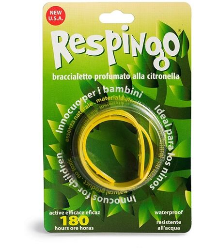 Respingo - Bracialetto profumato alla citronella. Si colloca facilmente al polso alla caviglia alla cintura di sicurezza dell'autovettura o al passeggino. Può essere utilizzato da persone di ogni età. Assolutamente innocuo per l'uomo agisce con efficienza grazie agli estratti di citronella conte… ...