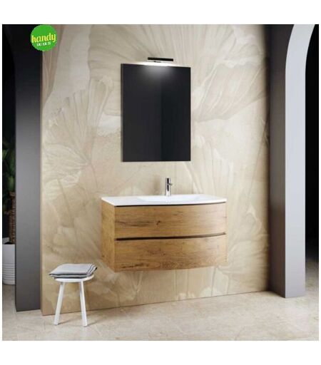 composizione da bagno sospesa realizzata in MDF, polimerico e mineral marmo dall'azienda Handy. Il modello Esse è una composizione di design, adatta ad ambienti minimal e moderni, capace di donare eleganza senza rinuciare a comodità e praticità. Grazie a due ampi cassetti, dotati oltretuttodi chiusura rallentata. sarà ampio il volume di stivaggio per poter conservare asciugamani ed oggetti per l'igiene personale. La specchiera ha unalineaessenziale riportando un applique a led cromato. Dimensioni mobile: H. 52,0 cm - L. 90,0 cm - P. 36,0 / 52,0 cm Dimensioni specchio H. 70,0 cm - L 80,0 cm ...