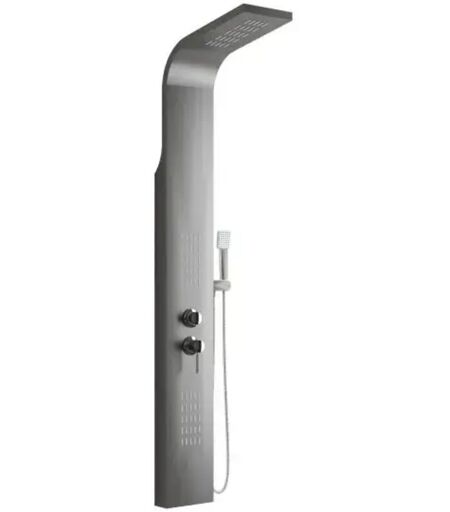 AMBRA WATER Colonna pannello doccia in acciaio inox effetto satinato con doccetta,flessibile e getti orizzontali massage serie coral effetto acciaio satinato