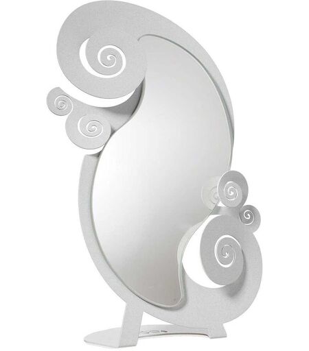 Specchio Da Tavolo Di Arti & Mestieri. Specchio Da Tavolo Circeo In Ferro Con Riccioli Di Colore Bianco Marmo. Specchio Piccolo Da Tavolo Con Design Moderno, Realizzato In Ferro Tagliato A Laser. Perfetto Per Essere Utilizzato Per Il Make-Up Ma Anche In ...