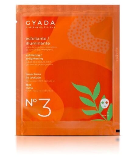 Maschera Esfoliante/Illuminante N.3 Gyada Cosmetics: Maschera viso in tessuto ad azione illuminante. Esfolia la pelle, promuovendo il rinnovo cellulare e migliorando la sua luminosità. Per tutti i tipi di pelle. Con aloe, pomodoro, bacche di goji ed acido lattobionico. Applica su pelle pulita, lascia agire 15 minuti e rimuovi. La Maschera Esfoliante/Illuminante N.3 di Gyada Cosmetics è una maschera in tessuto di cellulosa pensata per tutti i tipi di pelle. A base di aloe, pomodoro, bacche di goji ed acido lattobionico che regolarizzano il processo di cheratinizzazione e promuovono il rinnovo cellulare. La pelle sarà più luminosa e sana. Consigli d'uso: Applica su pelle pulita e detersa, lasciando agire 15 minuti. Risciacqua.. INCI Aqua, Aloe barbadensis leaf juice (*), Propanediol, Glycerin, Serine, Proline, Alanine, Solanum lycopersicum extract, Caprylyl glycol, Rosmarinus officinalis extract, Calcium pantothenate, Magnesium lactate, Lycium barbarum fruit extract (*), Punica granatum fruit extract (*), Lactobionic acid, Papain, Urea, Polyglyceryl-4 caprate, Xanthan gum, Maltodextrin, Ethylhexylglycerin, Parfum, Tetrasodium glutamate diacetate, Benzyl alcohol, Sodium citrate, Potassium lactate, Citric acid, Magnesium chloride, Sodium benzoate, Potassium sorbate. * da Agricoltura Biologica Controlliamo con cura le descrizioni dei nostri prodotti ma alcuni dati riportati sulla confezione del prodotto (INCI, consigli di utilizzo, certificazioni) possono variare in base agli aggiornamenti dei produttori. Non sempre questi aggiornamenti ci vengono comunicati e può capitare che le informazioni sulla confezione differiscano da quelle riportate qui sul sito. Ti chiediamo perciò di fare sempre riferimento alle informazioni che trovi sul prodotto. Le immagini riportate hanno uno scopo puramente indicativo e possono essere soggette a variazioni da parte dei produttori. ...