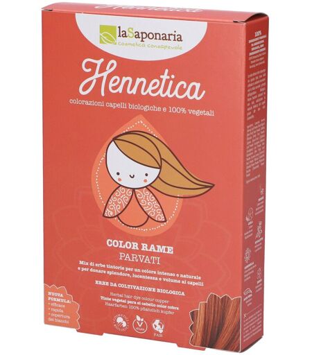 La Saponaria Tinta Vegetale Rame - Parvati La leggenda racconta che la dea Parvati abbia conquistato il marito Shiva, terribile dio della distruzione, decorando il suo corpo con l'henné rosso. Anche questo rame caldo e intenso trasformerà i vostri capelli in un'arma di seduzione! Non contiene picramato di sodio, ammoniaca, sali metallici e nessun additivo chimico ed è realizzata con erbe tintorie ed hennè di origine biologica per non danneggiare i capelli e donare corpo, splendore e brillantezza alle chiome. È la tinta che fa per te se desideri bellissimi riflessi naturali, capelli che risplendono di salute e un karma più pulito! Per l'applicazione; segui tutte le indicazioni che trovi sulla confezione e risciacqua solo con acqua. Aspetta poi 24-48 ore che il colore sedimenti bene e raggiunga il suo pieno potenziale e lava i capelli con shampoo e balsamo. Solo dopo questo ultimo passaggio avrai il tuo colore definitivo e vedrai splendere i capelli come mai prima. Modo d'uso: 1 - Prepara i capelli: lava bene i capelli con lo shampoo naturale pre-tinta Avatara de La Saponaria. Non usare shampoo che contengono siliconi o altri ingredienti filmanti per non ridurre l’effetto della tinta. 2 - Prepara la tinta: indossa i guanti e in una ciotola mescola la polvere tintoria con acqua tiepida (35-40 gradi). Aggiungi acqua fino ad ottenere una pasta liscia e omogenea, della stessa consistenza dello yogurt: per una perfetta applicazione non deve essere né troppo liquida né troppo densa. La quantità di polvere da utilizzare è determinata dalla lunghezza dei tuoi capelli e deve essere necessaria per coprire tutta la zona da trattare. 3 - Applica la tinta: applica la pasta così ottenuta, senza farla raffreddare, sui capelli umidi appena lavati separando i capelli a ciocche e partendo dalla radice verso le lunghezze. Raccogli i capelli e coprili con una pellicola e un asciugamano o un cappello di lana per mantenere il calore, lascia il tutto in posa dai 30 minuti alle 2 ore. Più tempo verrà lasciata la posa e meglio aderirà il colore e tenderà ad essere più scuro e coprente. 4 - Risciacqua e risplendi! Dopo il periodo di posa lava i capelli con acqua tiepida senza usare shampoo o balsami. Puoi eventualmente fare un ultimo risciacquo con acqua fredda e spruzzando un idrolato direttamente sui capelli umidi per fissare meglio il colore e chiudere le squame dei capelli. Non utilizzare altri prodotti sui capelli per almeno 24 ore. Questa tinta non contiene sostanze chimiche, per cui non è in grado di schiarire il tuo colore o garantire una tonalità di colore esatta. La tonalità finale ottenuta può variare in base al tuo colore di partenza, alla struttura dei capelli, ad eventuali trattamenti pregressi (es. tinte chimiche o permanenti) e alla modalità di applicazione (tempo di posa e temperatura). Ingredienti: Lawsonia inermis (Henna) Leaf Powder, Beta vulgaris (Beet root) Root Powder, Emblica officinalis (Amla), Fruit Powder, Ziziphus spina-Christi (Ziziphus) Leaf... ...