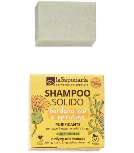 Shampoo LA Saponaria La Saponaria Shampoo Solido Purificante Antiorfora Bardana Bio e Spirulina 50 g solido