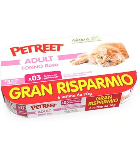 Petreet Tonno Rosa Con Gamberetti Cibo Umido Gatto Adulto 6x70g