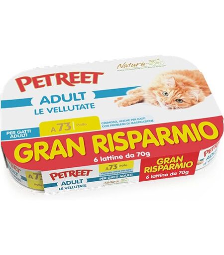 Petreet Vellutate Pollo Cibo Umido Gatto Adulto 6x70g