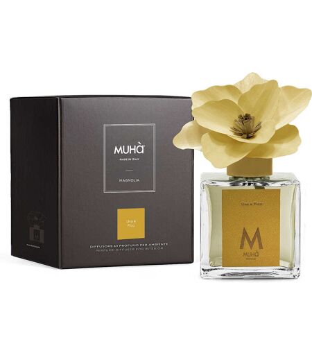 Diffusore D'Ambiente Di Muhà. Diffusore D’Ambiente Dal Design Italiano, Pensato Per Coniugare Estetica E Cura Artigianale. La Bottiglia In Vetro, Impreziosita Da Un Collo In Zama, Ospita Una Magnolia In Legno Di Betulla Realizzata A Mano, Che Sprigiona ...