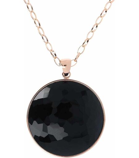 Collana Da Donna Lunga Di Bronzallure Della Collezione Felicia. Realizzata In Lega Golden Rosé, Placcata Oro Rosa 18kt, Con Catena Rolo Ovale Impreziosita Da Un Maxi Ciondolo Tondo (42 Mm) In Pietra Naturale Sfaccettata. Chiusura A Moschettone. Lega ...