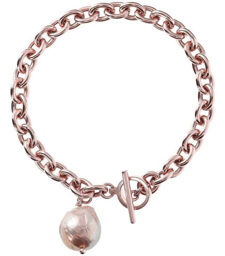 Bracciale Da Donna Di Bronzallure Della Collezione Maxima Con Catena Rolo. Realizzato In Lega Golden Rosé, Placcato Oro Rosa 18kt, Impreziosito Da Una Perla Ming Rosa Coltivata D'Acqua Dolce Con Diametro Di Circa 12 Mm, Dalla Forma Irregolare; Chiusura A ...