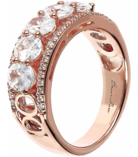 Anello Da Donna Riviera Di Bronzallure Della Collezione Altissima. Realizzato In Lega Golden Rosé, Placcata Oro Rosa 18kt, Impreziosito Da Cinque Punti Luce Costeggiati Da Piccole Cubic Zirconia, Qualità Luminosa. Lega Brevettata Golden Rosé Designed And ...