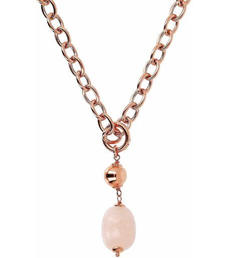 Collana Da Donna Lunga Di Bronzallure Della Collezione Felicia. Realizzata In Lega Golden Rosé, Placcata Oro Rosa 18kt, Con Catena Rolo Impreziosita Da Un Pendente Con Sfera Lucida E Pietra Naturale, Quarzo Rosa, Dalla Forma Leggermente Allungata. ...