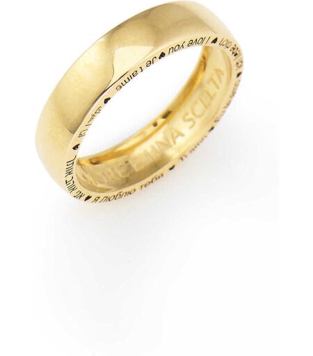 Anello Da Donna Di Amen Della Collezione Amore. Anello In Argento 925 Di Colore Oro Con Incisa Internamente La Scritta "L'Amore È Una Scelta" Ed Esternamente "Ti Amo" In Diverse Lingue. Anello Di Misura 16. La Referenza È Fetag-16, Materiale Gioiello: ...
