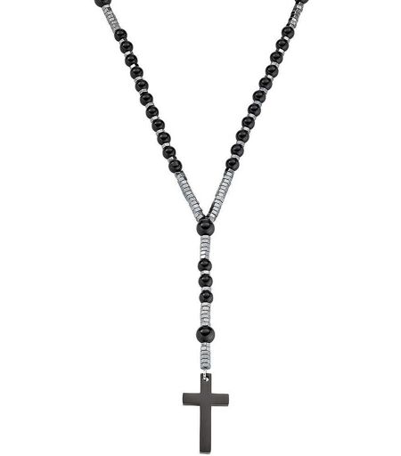 Collana Da Uomo Di Amen Della Collezione Acciaio. Collana In Acciaio Con Finitura In Pvd Nero Con Agata Nera, Ematite E Simbolo Croce. Misure: Lunghezza 60 Cm. La Referenza È Accronn4 , Materiale Gioiello: Acciaio, Argento 925, Bigiotteria, Oro, Pelle; ...