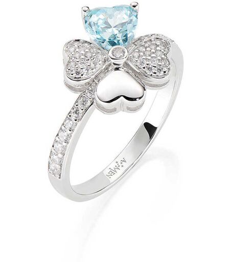Amen Anello Acquamarina, Zirconi Gioiello Donna Quadricuore RQUBAC-16