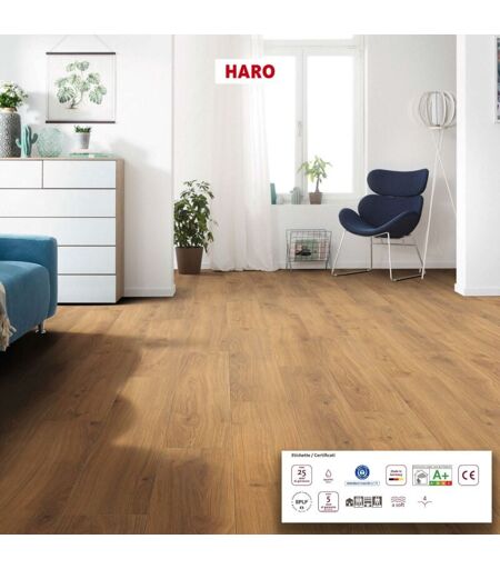 HARO 18.99 al mq promo bancali da 102,96mq di laminato Tritty 100 (fascia altissima) 8x193x1282 AC4 rovere emilia honig