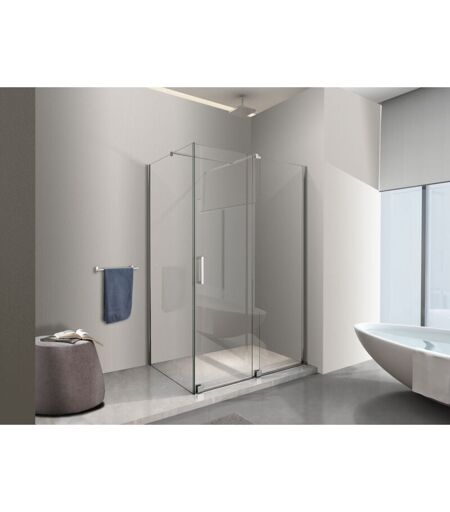 NALA Box Doccia Angolare Con Pannello Fisso Laterale e Porta Frontale Scorrevole Senza Telaio h 200 Cromo Trasparente Cm 75 (73-75) x 140 (136-141) -