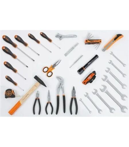 L'assortimento di utensili per impiego universale 35 Pz. 059151021 Beta 5915VU/0 è un assortimento di utensili manuali completo e versatile.Questo assortimento è consigliato in abbinamento con i seguenti prodotti Beta: C4, C5, C5S, C6T.La dotazione da 35 pezzi comprende nello specifico:- 1x Beta 32 Bulino 4 mm- 1x Beta 35 Scalpelli piatti nervati 125 mm- 8x Beta 55 Chiavi a forchetta da 6x7 - 8x9 - 10x11 - 12x13 - 14x15 - 16x17 - 18x19 - 20x22 mm- 1x Beta 96/BGS7 Set da 7 chiavi maschio esagonali da 1,5 - 2 - 2,5 - 3 - 4 - 5 - 6 mm- 1x Beta 111 Chiave regolabile a rullino 150 mm- 1x Beta 1048 Pinze regolabili a cerniera chiusa 250 mm- 1x Beta 1082G Tronchesi a taglienti diagonali 160 mm- 1x Beta 1128BMX Forbici per elettricisti a lame dritte- 1x Beta 1150G Pinze universali a grande effetto 180 mm- 1x Beta 1166G Pinze a becchi mezzotondi lunghissimi 160 mm- 4x Beta 1201E Cacciavite a lama piatta da 3x75 - 4x100 - 5,5x100 - 6,5x150 mm - 3x Beta 1202E Cacciavite a croce Phillips da ...