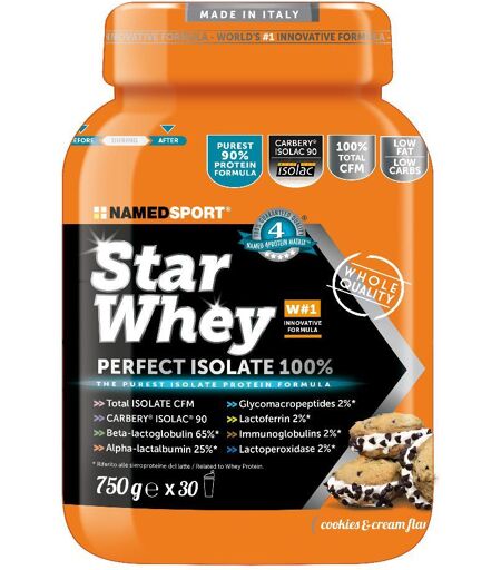 Integratore Proteico in Polvere, Proteine Isolate del Siero del Latte, Vitamine B, Gusto Cookies Cream - DESCRIZIONE PRODOTTO: - Named Sport Star Whey Perfect Isolate 100% è un integratore proteico in polvere di altissima qualità a base di proteine isolate del siero del latte CARBERY Isolac 90. Arr… ...