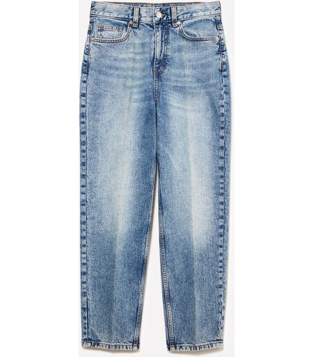 Jeans mom fit in denim chiaro di cotone elasticizzato. Cinque tasche, piega stirata lungo la gamba, passanti in vita e chiusura zip e bottone. Questo capo è realizzato con almeno il 20% di cotone riciclato certificato RCS. Certificato da ICEA - ICEA - TX - 611. I prodotti certificati secondo il Recycled Claim Standard (RCS) contengono contenuto riciclato che è stato verificato in modo indipendente in ogni fase della filiera, dal riciclatore al prodotto finito. ...