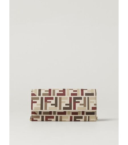 Fendi Continental With Chain in cotone spalmato con FF multicolor Beige Taglia OS