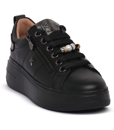 sneakers da donna con suola chunky per le donne che vivono la quotidianita con stile. scarpe con la tomaia in pelle e suola alta 4 cm. chiusura con lacci e pratica zip laterale. made in italy. colore: nero. ...