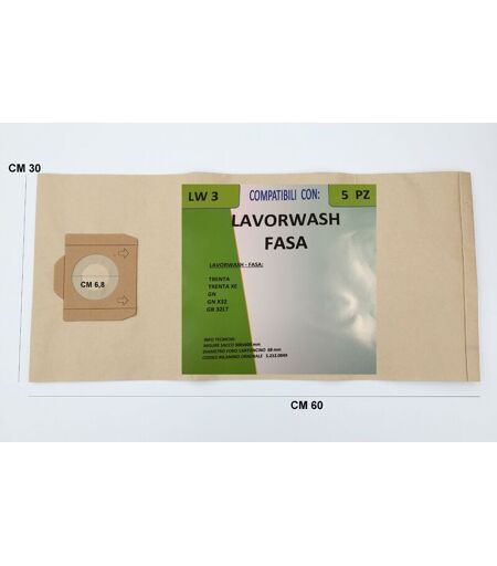 EUROSTORE07 5 sacchetti aspirapolvere adatti lavorwash fasa trenta / gn / gb 5.212.0049 lw 3