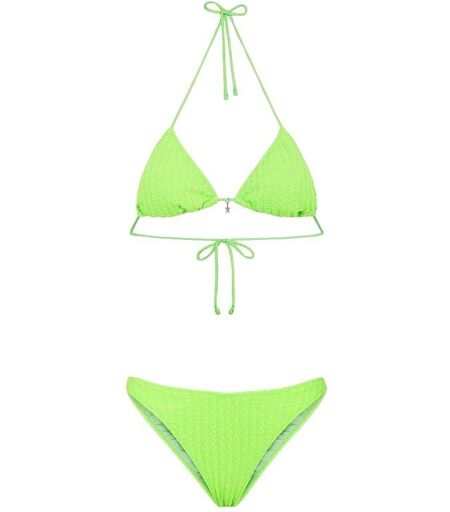 Effek Bikini Triangolo con Slip Americano Fisso Goffrato Rigato Verde Fluo Donna M