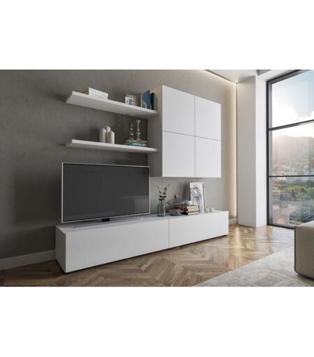BRICOZONE Parete Attrezzata Mobile Soggiorno Moderno Con Base TV 2 Ante Pensile 4 Ante e 2 Mensole Design Contemporaneo in Melaminico Facile da Pulire 200 x