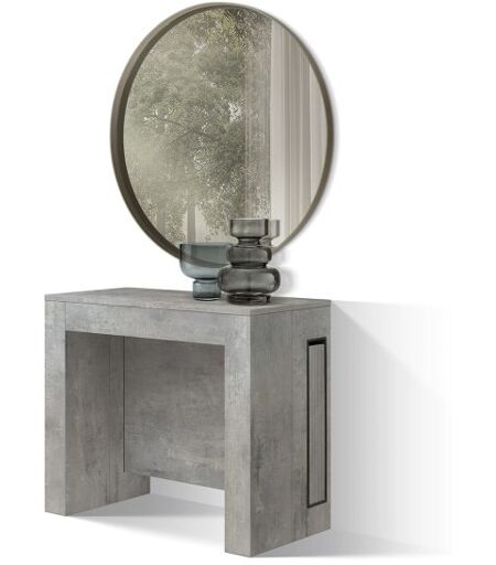 Pazzo Design Tavolo Consolle Allungabile con porta prolunghe, Grigio Cemento, Made in Italy, da 45 a 300 cm