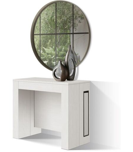 Pazzo Design Tavolo Consolle Allungabile con porta prolunghe, Bianco Frassinato, Made in Italy, da 45 a 300 cm