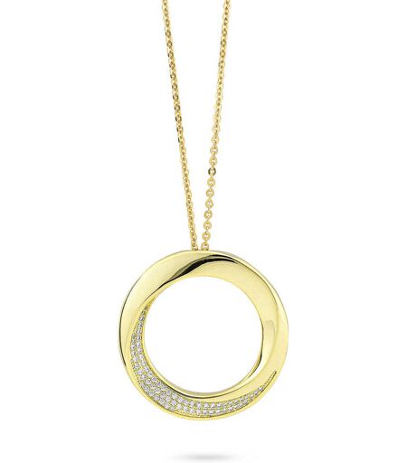 Collane Da Donna Di Boccadamo Della Linea Mediterranea Della Collezione Caleida. Collana Placcata Oro Giallo Con Pendente A Modulo Circolare Grande Con Pavè Di Zirconi. Materiale: Bronzo. Produzione: Realizzato In Italia. Misura: Lunghezza Cm 80. ...