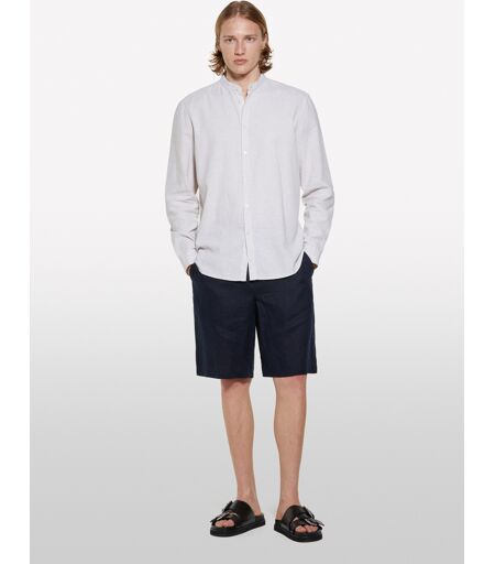 Camicia beige alla corena in misto cotone e lino. Collo guru, abbottonatura frontale, maniche lunghe con spalla morbida e fondo stondato. Articolo realizzato con materiale contenente almeno il 50% di lino coltivato in Europa. ...