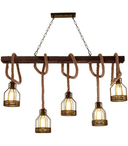 VETRINEINRETE - Lampadario a sospensione in legno 5 portalampada in corda di canapa e metallo lampada da tavolo da cucina vintage country E27