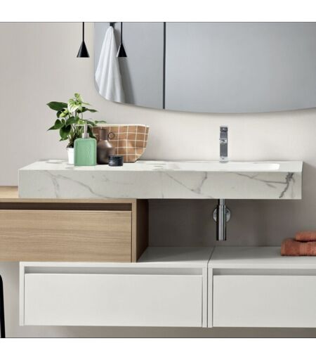 BLUELIFE Mensola sospesa lavabo destra 120 cm in hpl laminato fluvio Bianco venato