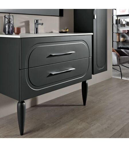 BLUELIFE Mobile bagno specchio 100 cm - Antracite Opaco - 2 cassetti - CASPIO