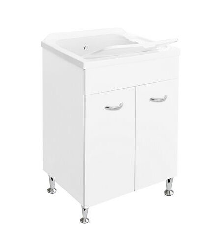 In nobilitato idrofugo sp 18 mm. Vasca in polipropilene. Non è particolarmente indicato per installazioni all'aperto. Completo di tavola in polipropilene. Maniglie e piedini in ABS cromato. Altezza cm 85. Completo di sifone e piletta. Vasca forabile per installazione rubinetto. Profondità vasca 27 cm. ...