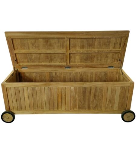 Questo box in teak con ruote unisce funzionalità e stile. Realizzato in legno resistente, offre ampio spazio per riporre cuscini e accessori da giardino. Il coperchio con cerniere garantisce un accesso pratico, mentre le ruote facilitano lo spostamento. Perfetto per mantenere l’ordine in giardini, terrazze e spazi esterni con un tocco di eleganza. ...