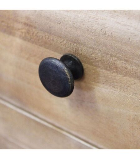 Mobiletto in vero legno di mogano con anta, cassetto e tre ripiani aperti. Design compatto, stile rustico e naturale. Ideale per ingresso, soggiorno o cucina. Ogni pezzo è unico grazie alle venature naturali del legno. Perfetto mix di funzionalità e calore per arredare con carattere. ...