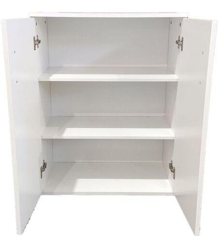 Mobile contenitore in pannello truciolare bianco con due ante e tre ripiani interni. Compatto e versatile, è ideale per organizzare accessori, libri, scarpe o giochi in qualsiasi ambiente della casa. Le maniglie nere donano un elegante contrasto, rendendolo perfetto per chi cerca ordine e stile in un unico arredo. ...