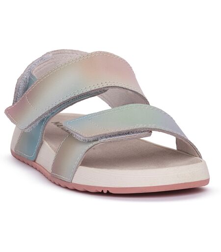sandali in pelle per bambine con tomaia in morbido vitello con tre chiusre a strappo regolabili fodera in cuoio e soletta in suede. fondo in gomma con battistrada a contrasto e disegno personalizzato. made in italy. colore: rosa/multicolor. ...