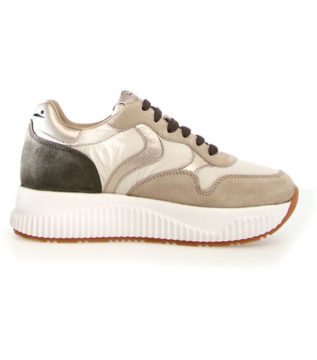 Sneaker fashion con tomaia in pelle e suede a contrasto. Gli inserti d'orati decorano fianco e topponcino. Patch sul lato. Fondo in EVA con effetto plateau. Codice articolo: 2018377011B30 Chiusura: Lacci Suola: Gomma Soletta: Pelle - Tessuto Materiale Interno: Pelle Materiale Esterno: Pelle - Velour ...