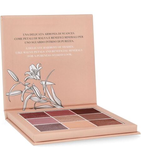 Una delicata armonia di nuances, come petali di malva e benefici minerali per uno sguardo intriso di purezza. Pure Beauty Eyes Palette contiene nove ombretti in finish mat e shimmer dalla texture cremosa al tatto e facile da applicare. Senza talco, contiene il 94% di ingredienti di origine naturale, tra cui l&rsquoamido di tapioca. Le sfumature nude si fondono ai toni del malva per realizzare un bouquet di colori versatile e universalmente elegante. ...
