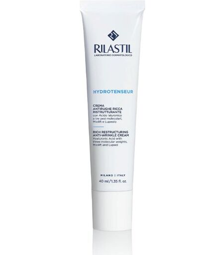 Rilastil Hydrotenseur Crema Ricca - Crema viso per pelli secche e molto secche - Descrizione Crema viso anti - rughe nutriente per pelli secche e molto secche. Trattamento concentrato ristrutturante che elasticizza la pelle e distende le rughe. Formula con acido ialuronico a tre pesi molecolari, Lu… ...